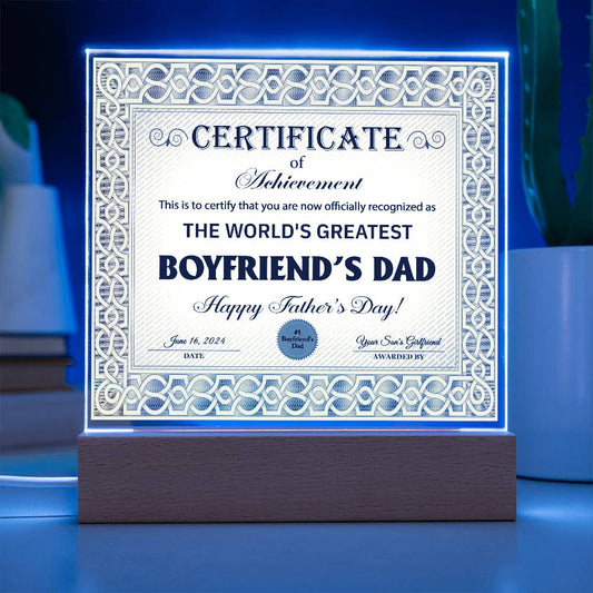 Boyfriend's Dad-Certificate Of Achievement-Decorative Acrylic Plaque