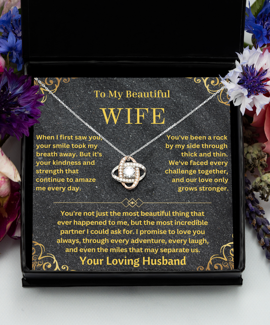 Wife-When i First Saw You-Love Knot Rose Gold Necklace